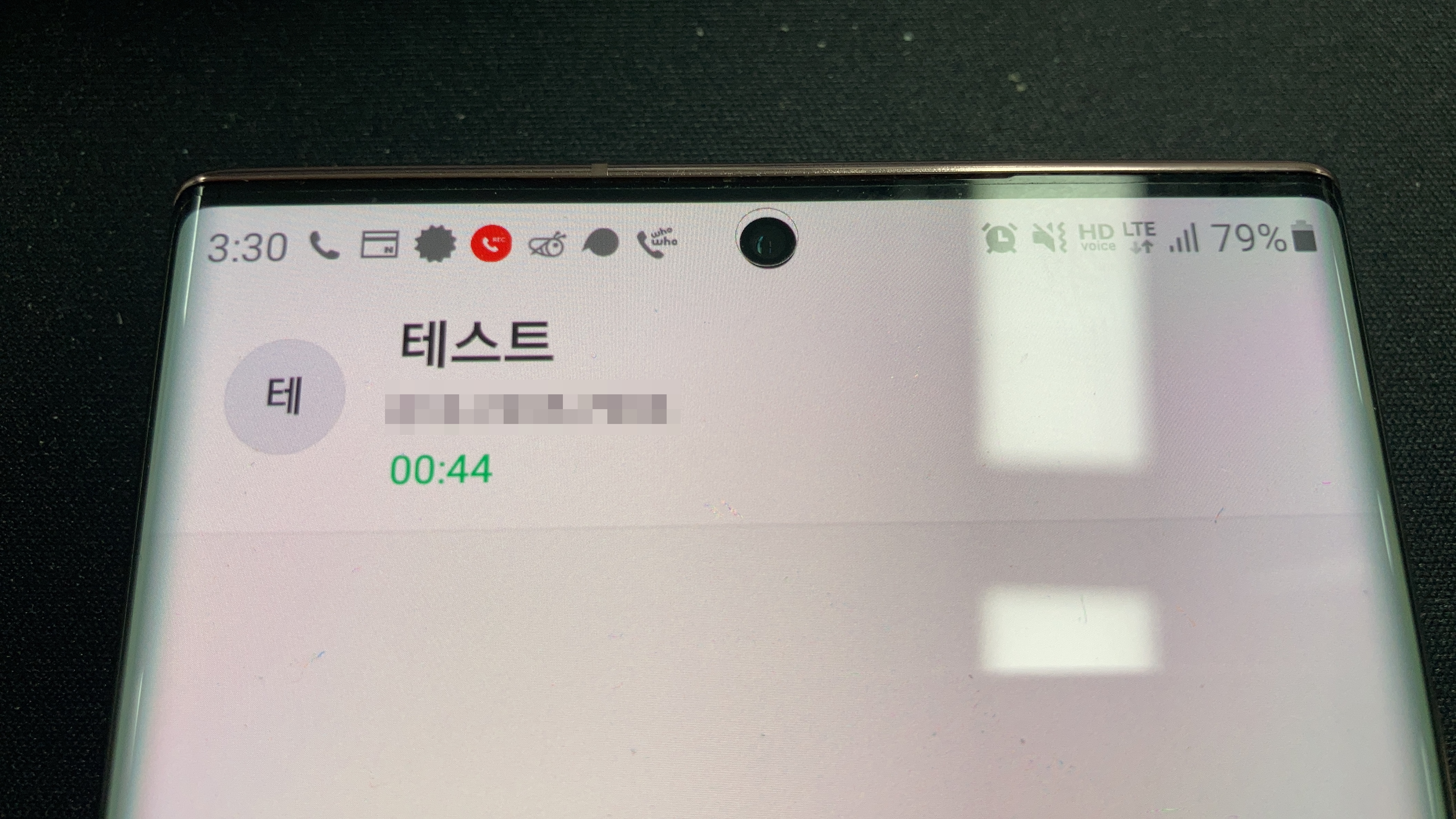 사진과 함께 보면 현재 해당 휴대폰은 전화통화가 걸려 있는 상태입니다.