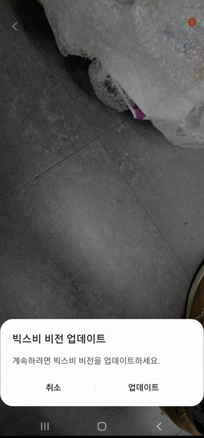 빅스비 비전을 처음 실행했기 때문에 업데이트를 요구하는데 원하는대로 해줍니다.