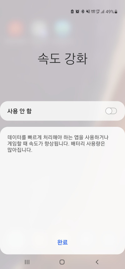 - 갤럭시 속도강화 기능을 활성화 해보자