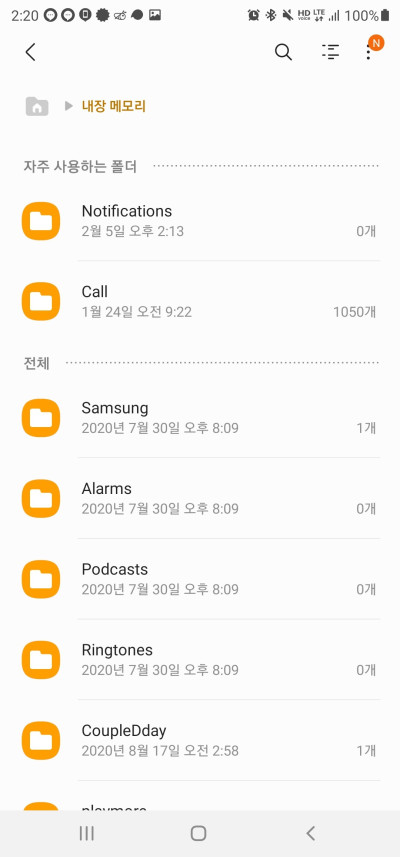 내 파일 앱을 열고 내장 메모리를 선택합니다. 그리고 Notifications 폴더에 본인이 보유한 mp3 파일을 넣어야 합니다.