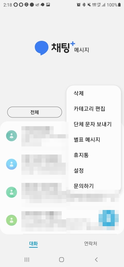 매시지 앱을 선택하고 우측 상단 점을 누르고 설정을 누릅니다.