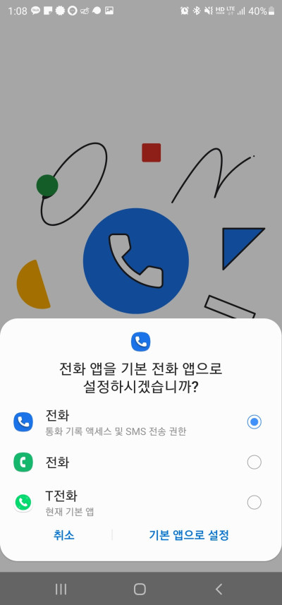 구글 전화 앱을 다운로드 받은 뒤 기본 앱 설정을 진행합니다.
