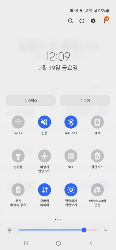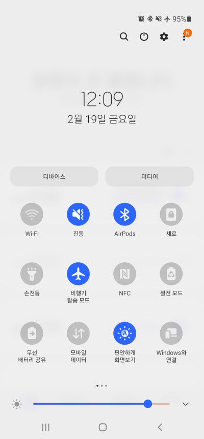 우선 갤럭시 휴대폰에서 비행기모드를 설정합니다.