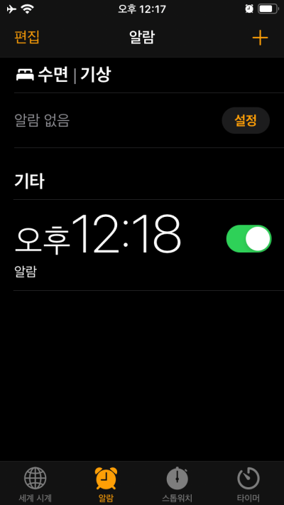 휴대폰(아이폰) 비행기모드 적용시 알람 발생 여부