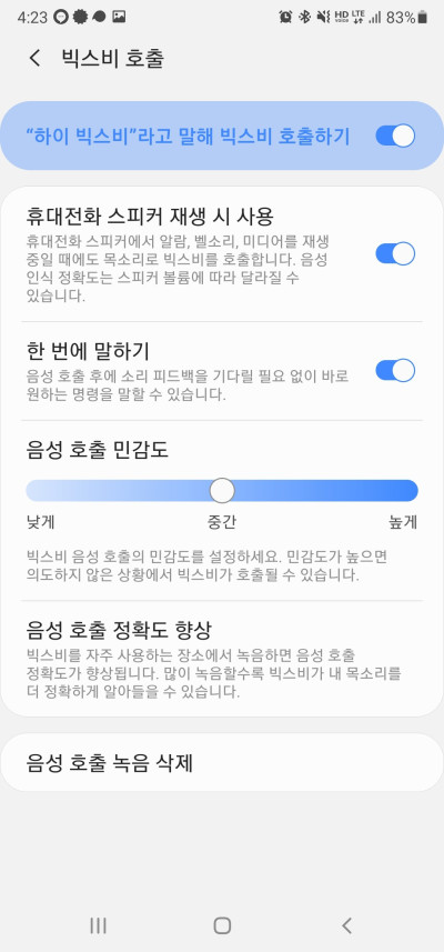 빅스비 음성호출(음성인식) 기능 안될때 목소리 재등록 설정 변경 방법