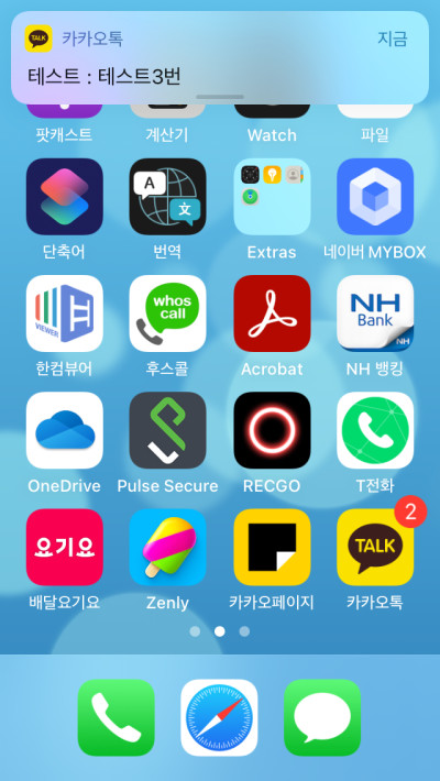 카카오톡 앱을 나와서 와이파이를 연결하고 다시 확인을 해보면 카카오톡 메세지 3개가 그대로 보이는 것을 알 수 있습니다. 여기까지는 기존 다른 사람들이 설명한 내용과 비슷하게 흘러가는 거 같습니다.