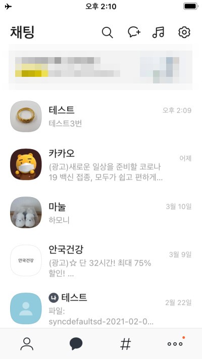 비행기모드를 해제하고 와이파이를 연결한 뒤 카카오톡을 들어가봅니다. 메세지 3개는 여전히 미확인 상태입니다.