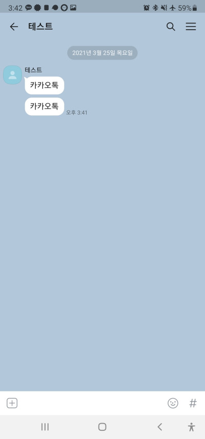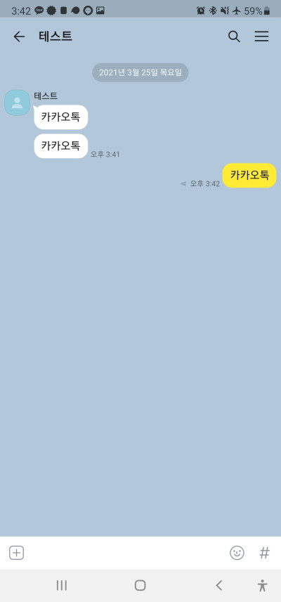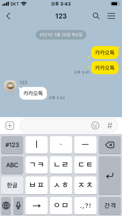 이상태에서 메세지를 받은 쪽의 카카오톡 채팅창을 확인해보면 이런식으로 메세지가 들어오게 됩니다.