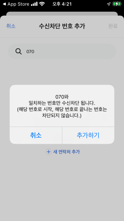 아이폰은 070 번호를 자체적으로 차단할 수 없다
