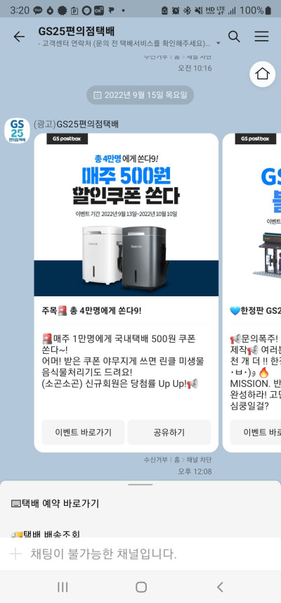 카카오톡 채널로 날아온 링크를 여는것은 조금 방식이 다릅니다.