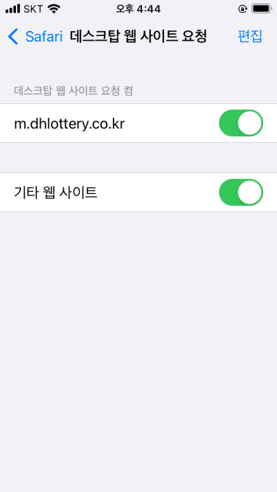 만약 PC버전으로 웹사이트가 열리지 않을 경우 웹사이트 설정을 눌러 데스크탑 웹 사이트 요청을 활성화 해줍니다.