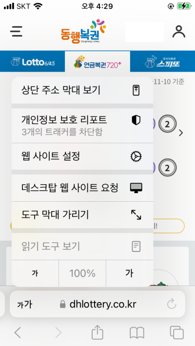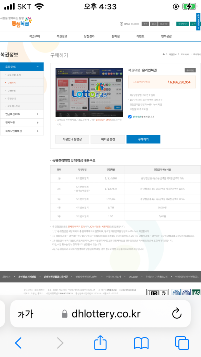여기서 중요한데 열려있는 동행복권 홈페이지를 닫고 처음부터 다시 앞에 m이 제거된 주소를 입력했더니 들어가지는게 아니겠습니까? 헐...어디서 뭘 잘못한건지...;;