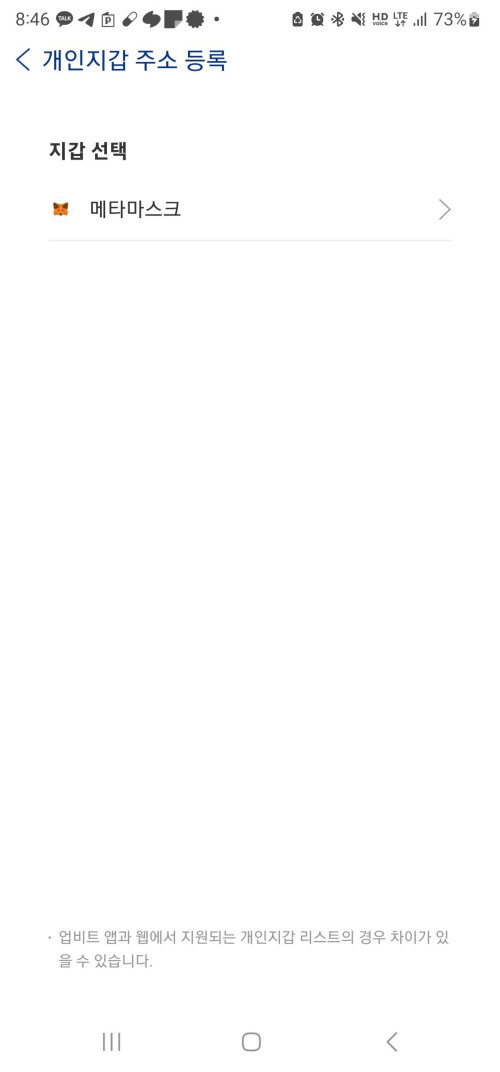 휴대폰(핸드폰) 업비트에서 메타마스크 개인지갑 등록 방법
