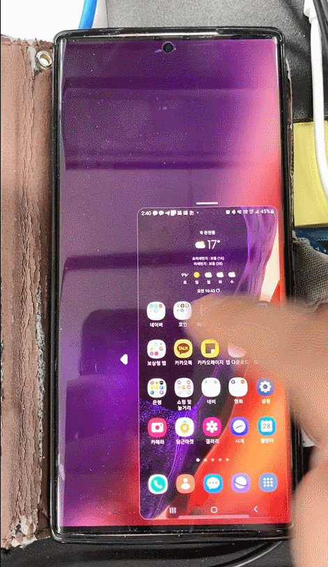 1. 홈버튼을 두번 빠르게 눌러 한손모드를 적용합니다.