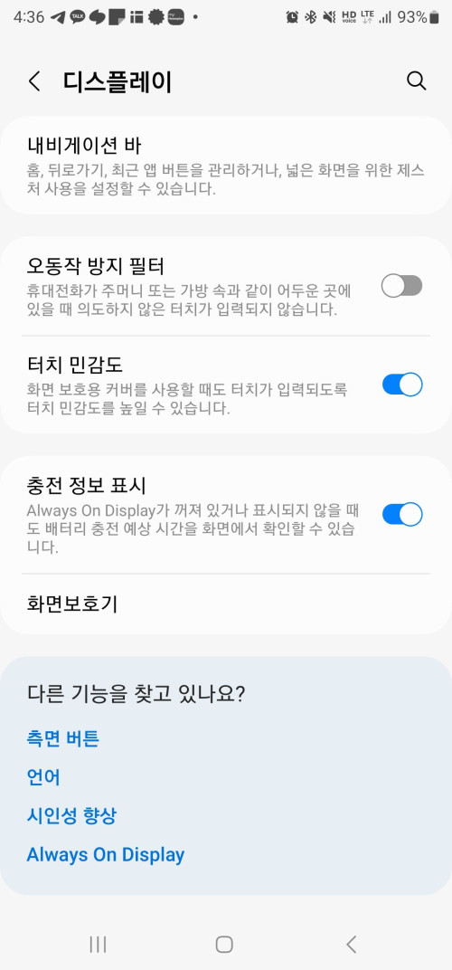 설정에서 디스플레이 내부옵션을 통해 진행할 수 있습니다.