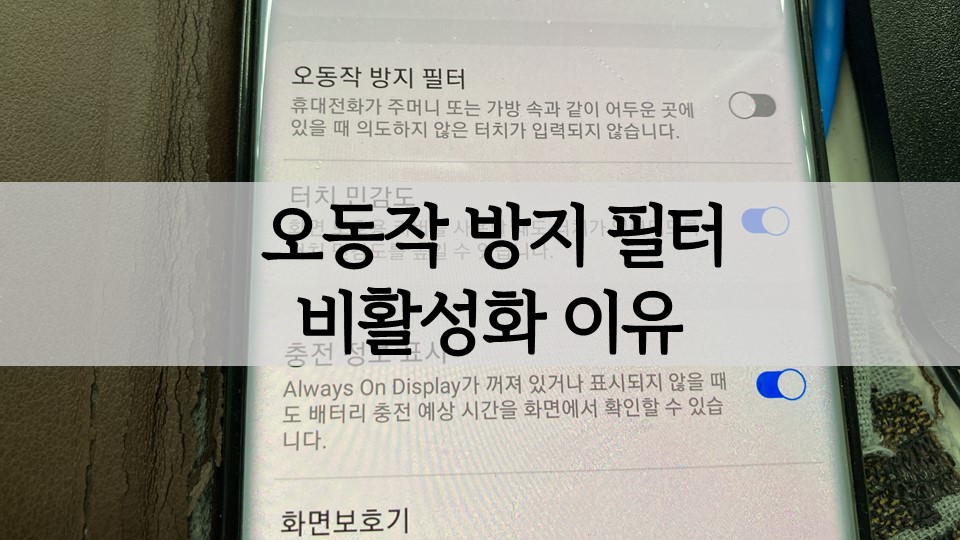 갤럭시 휴대폰 사용 중 오동작 방지 필터 해제 이유