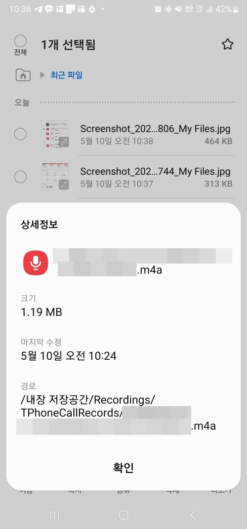 삼성 갤럭시 T전화 자동 통화녹음 저장파일 위치 간단 확인
