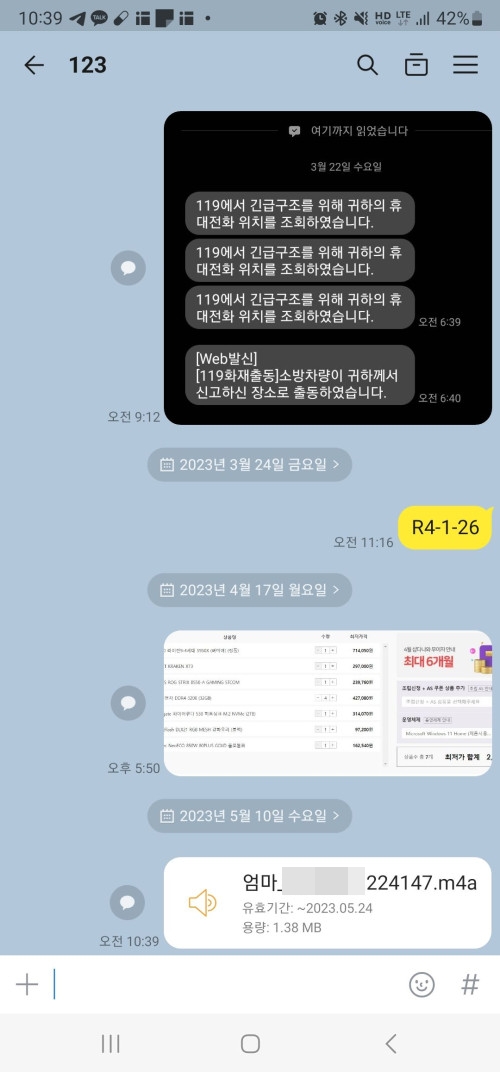 내 채팅방에 통화녹음파일이 업로드 되었습니다. 해당 파일의 공유가능 유효기간이 존재하기 때문에 별도로 다운로드를 받아 저장하거나 되도록 빠른 시간안에 다른 사람에게 재공유를 진행하시면 됩니다.