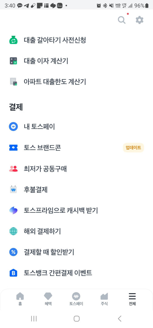 토스 옵션에서 결제항목의 후불결제를 선택하여 한도확인을 통해 신청을 할 수 있습니다.