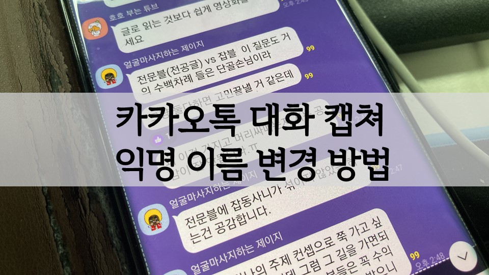 카카오톡(카톡) 대화 캡쳐 작업시 익명 이름 변경 방법 어떻게 되는지 간단하게 알아보았습니다. 어려운 작업은 아니며 간혹 사용할 일이 있을지도 모르니 참고하시면 되겠습니다.
