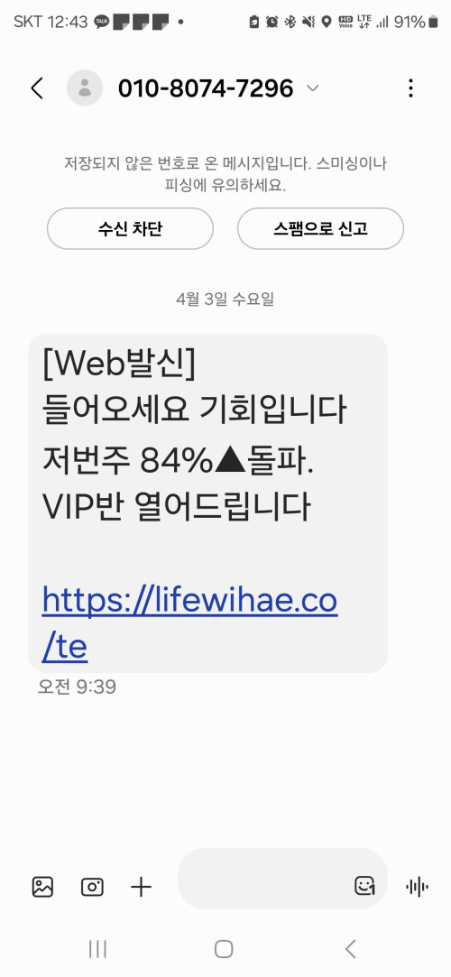 거기다가 언제 구현될지는 아직 모르겠지만 출시한지 수개월이 흘렀음에도 가장 중요한 스팸신고 기능이 구현되지 않았다는 것입니다. 요즘 스팸문자가 010으로 수시로 도착하는데 이를 거부하거나 신고할 수 있는 수단이 현재 글을 작성하고 있는 시점 기준으로 존재하지 않아 사용을 꺼리게 되고 실제로 이 부분때문에 개인적으로는 사용을 거의 하지 않고 있습니다.