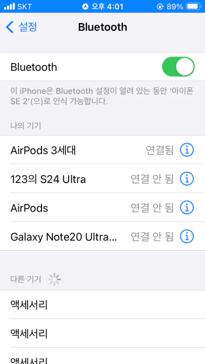 1. 설정 화면에서 블루투스 연결 및 기기 목록 확인