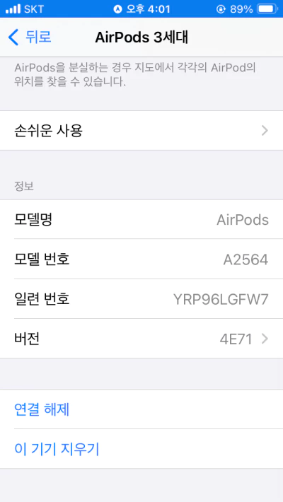 2. 에어팟 3세대 모델 정보 및 펌웨어 버전 확인